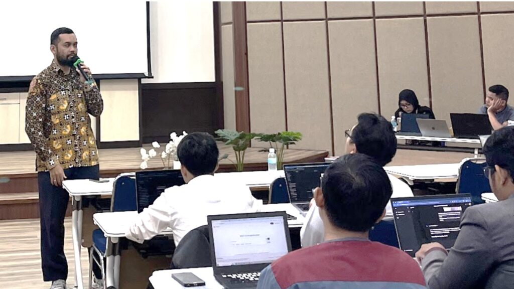 Hanson Prihantoro Putro (Dosen Jurusan Informatika FTI UII) saat menyampaikan materi pelatihan AI. Foto: Jeri Irgo