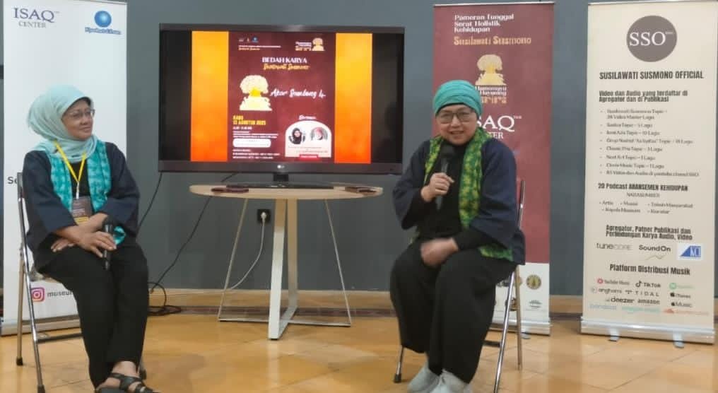 beritabernas.com – Dalam rangkaian acara pameran Serat Holistik Kehidupan Susilawati Susmono (SHKSS) bertajuk Hamemayu Hayuning Sarira di Gedung Saraswati Museum Negeri Sonobudoyo Yogyakarta mulai 2 Agustus hingga 17 Agustus 2025, juga diadakan bedah karya Akar Sambung 4, yang menjadi icon gate pameran, pada Rabu 13 Agustus 2025 sore.