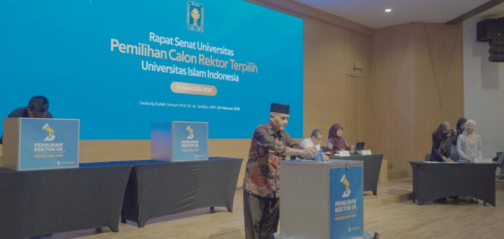 Ketua Panitia Pemilihan Rektor UII periode 2026–2030 Dr Eko Riyadi SH MH dalam siaran pers yang diterima beritabernas.com, Rabu 25 Pebruari 2026, mengatakan, ketiga calon Rektor Terpilih UII periode 2026-2030 tersbut adalah Prof Dr Ir Hari Purnomo MT IPU (Dekan FTI, Prof Dr-Ing. Ar. Ilya Fadjar Maharika MA IAI (Dekan FTSP) dan Prof Dr.rer.soc Masduki S.Ag MSi (Dekan Fakultas Ilmu Sosial Budaya).