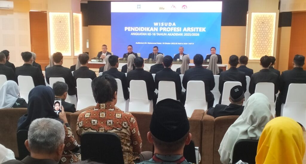 beritabernas.com – Program Studi Profesi Arsitektur (PPAr), FTSP UII mewisuda 23 lulusan program profesi tersebut di Kampus FTSP UII, pada Sabtu 18 Oktober 2025. Dari 23 lulusan PPAr yang diwisuda tersebut, 17 di antaranya lulus dengan predikat Cumlaude (Dengan Pujian).