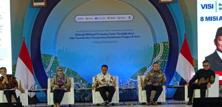 beritabernas.com – Java Regional Economic Forum (JREF) 2024 membahas Strategi Hilirisasi Pertanian Guna Meningkatkankan Nilai Tambah dan Memperkuat Ketahanan Pangan di Jawa. Kegiatan yang diselenggarakan oleh Bank Indonesia (BI) bekerjasama dengan Kementerian Koordinator Bidang Perekonomian, Kementerian Perindustrian, Kementerian Pertanian, Kementerian Investasi dan Hilirisasi/BKPM dan Kementerian Kelautan dan Perikanan ini berlangsung di Hotel Westin, Surabaya pada Rabu 20 November 2024.