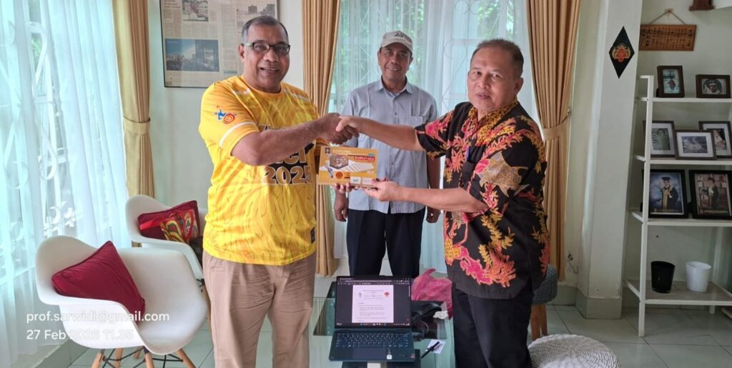 Prof Ir H Sarwidi (kanan) memeberikan kenang-kenangan kepada wakil dari Malaysia Green Technology Society (MGTS). Foto: Istimewa