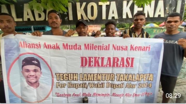 Deklarasi dukungan pada Teguh Lamentur Takalapeta dilakukan Aliansi Pemuda Milenial Nusa Kenari, yang terdiri dari Evander Saiputa, Willy Kalla, Yeremias Landena, Spenson Luase, Markus Laure dan Lasarus Kabey. Mereka membentangkan spanduk yang bertuliskan Aliansi Pemuda Milenial Nusa Kenari Deklarasi Teguh Lamentur Takalapeta maju Bupati/ Wakil Bupati Alor tahun 2024.