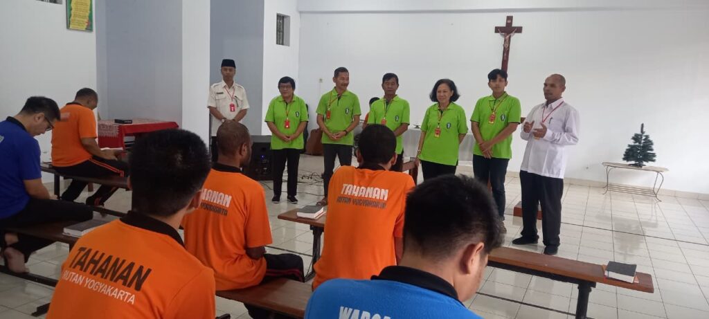 beritabernas.com – Penyuluh Agama Katolik Kantor Kemenag Kota Yogyakarta berkolaborasi dengan Tim Pelayanan (Timpel) Kerahiman Ilahi Simpul Paroki St Petrus dan Paulus Babadan, Wedomartani, Ngemplak, Sleman melaksanakan pembinaan iman bagi Warga Binaan (Wabin) yang Kristiani di Rumah Tahanan (Rutan) Kelas 2A Wirogunan Kota Yogyakarta pada Selasa 9 September 2025.