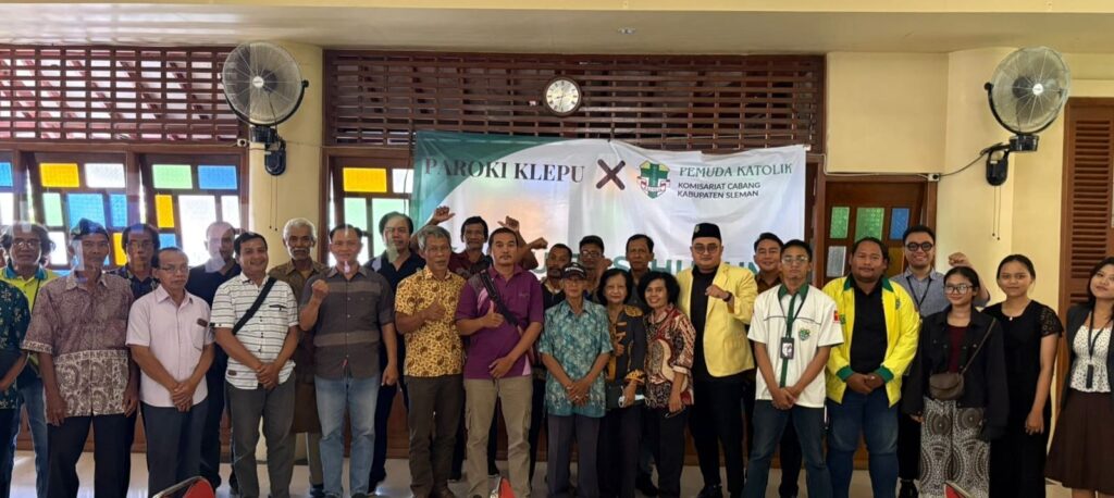 Kader Pemuda Katolik Komisariat Cabang Sleman bersama peserta penyuluhan foto bersama di Aula Gereja Klepu, Minggu 15 Maret 2026. Foto: Istimewa
