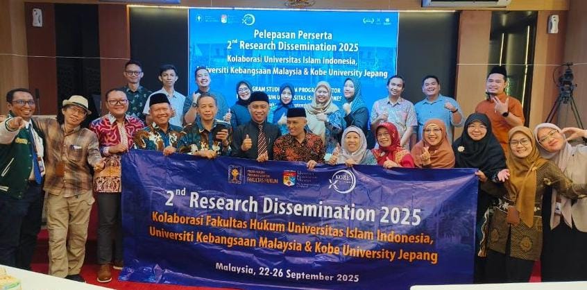 Para mahasiswa dan dosen yang mengikuti kegiatan dengan nama Program Bangi Salad 2025 ini dilepas oleh Dekan FH UII Prof Dr Budi Agus Riswandi SH M.Hum, Sabtu 20 September 2025. Acara pelepasan yang dikemas dengan Program 2nd Desimination Research 2025 Program Doktor Ilmu Hukum FH UII ini juga dihadiri oleh Pimpinan FHUII dan tenaga kependidikan seperti Kadiv Akademik Arief SAtedjo A.MD dan tim program 2nd Research Desimination 2025.