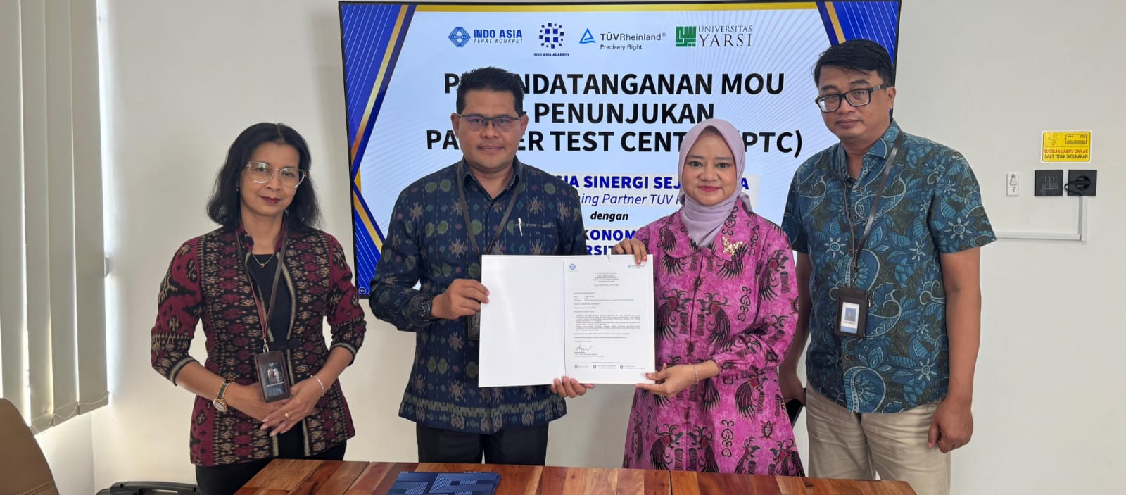 Penandatanganan Nota Kesepahaman (MoU) dengan Fakultas Ekonomi dan Bisnis (FEB) Universitas YARSI dan penunjukan resmi sebagai Partner Test Center (PTC) TUV Rheinland ini menunjukkan komitmen PT Indo Asia Sinergi Sejahtera melalui unit pengembangan Indo Asia Academy sebagai Authorized Training Partner TUV Rheinland.