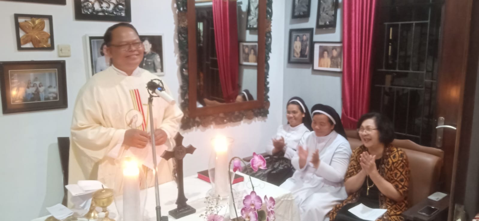 Usai misa, Maria Regina Aan Irafani Theo Adiprana yang sudah berusia 73 tahun, masih fasih melambungkan lagu One Day at a Time Sweet Jesus . Bahkan Romo Antonius Saptono Hadi Pr dan para Suster dari kongregasi Ordo Pewarta (OP) serta putranya yang hadir dari Laos juga ikut melambungkan lagu, sehingga suasana misa syukur semakin terasa sukacita. (ZB Darmadi)