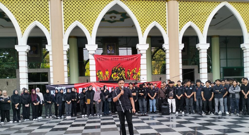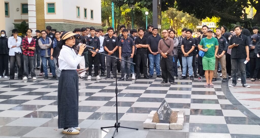 beritabernas.com – Sivitas akademika UII bersama sejumlah aktivis kemanusiaan yang juga Penulis Novel Okky Madasari melakukan aksi solidaritas di Selasar Gedung Auditorium Prof. Dr KH Abdul Kahar Mudzakkir Kampus Terpadu UII, Senin 6 Oktober 2025 siang.