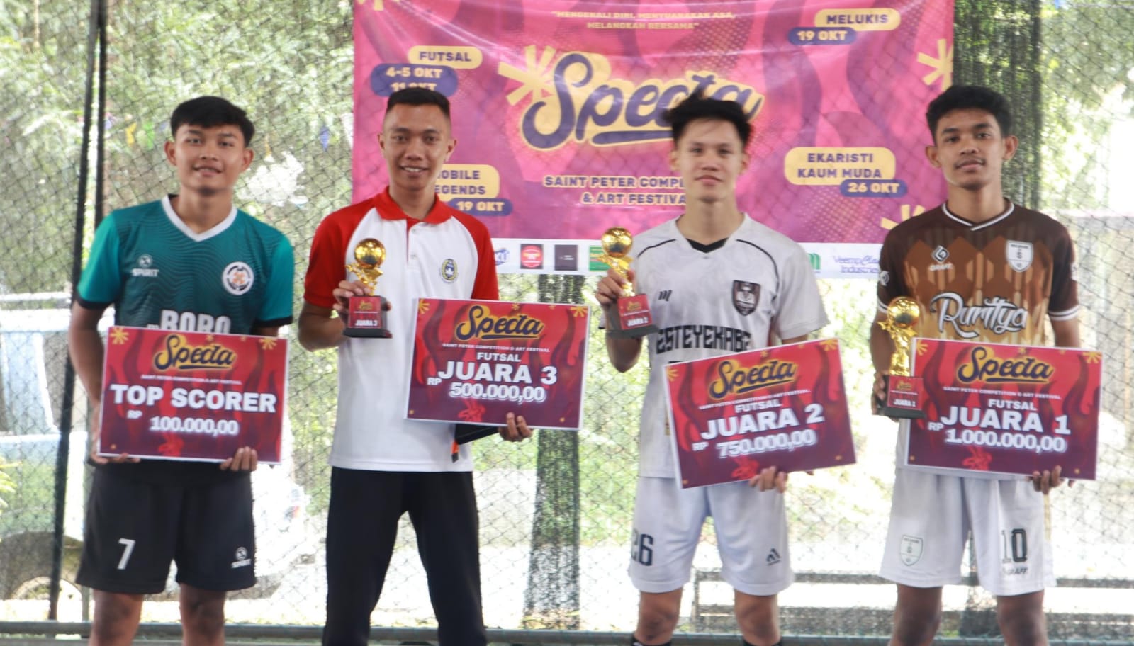 beritabernas.com – Tim futsal Orang Muda Katolik (OMK) dari Paroki Santo Yohanes Paulus II Brayut berhasil merebut gelar juara pertama dalam ajang Specta Futsal Competition yang digelar di Bedjo Futsal, Plaosan, Tlogoadi, Sleman. Kompetisi yang diselenggarakan oleh OMK Santo Petrus Warak ini merupakan acara pembuka dari rangkaian besar kegiatan kaum muda bertajuk Specta.