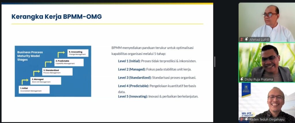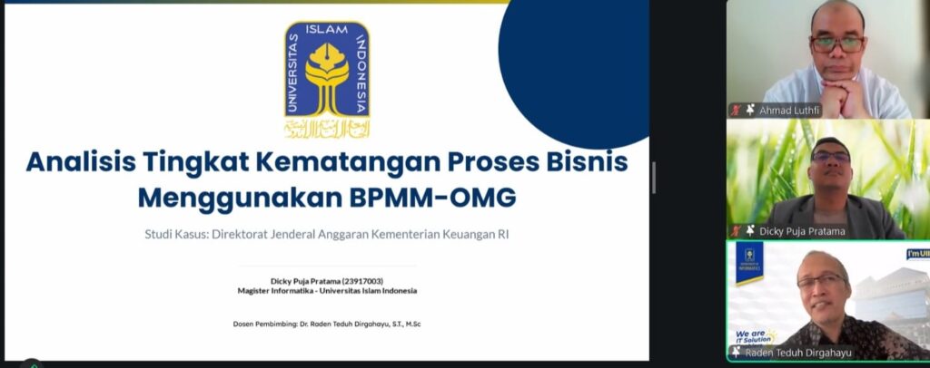 Demikian kesimpulan penelitian yang dilakukan Dicky Puja Pratama M.Kom, Alumni Program Studi Informatika, Program Magister FTI UII, berjudul Analisis Tingkat Kematangan Proses Bisnis Menggunakan BPMM OMG di Direktorat Jenderal Anggaran Kementerian Keuangan Republik Indonesia.