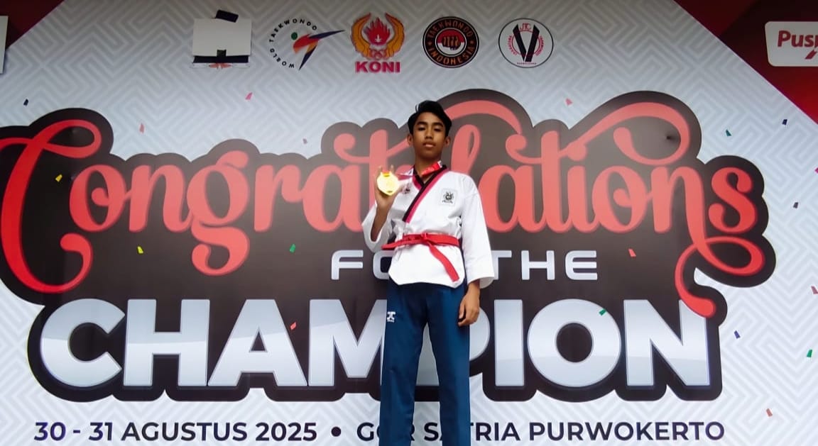beritabernas.com – Atlet Poomsae Spirit Fighter Tristan Veda Nugroho berhasil meraih medali emas untuk kategori Poomsae Junior Putra dalam Indonesia Expo Battle 3 Taekwondo Championship 2025 Piala DPR RI yang dilaksanakan di GOR Satria Purwokerto Jawa Tengah, 29-31 Agustus 2025.