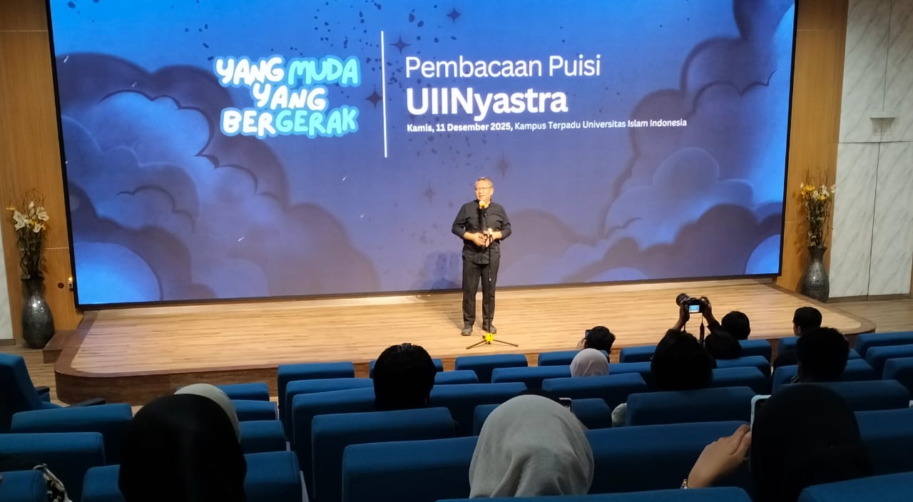beritabernas.com – Acara parade baca puisi yang biasa disebut UII Nyastra sudah berjalan untuk keenam kalinya, Kamis 11 Desember 2025. Dalam acara yang diikuti mahasiswa dan dosen dari berbagai fakultas ini mengangkat tema Yang Muda Yang Bergerak dengan 61 puisi yang dibacakan.