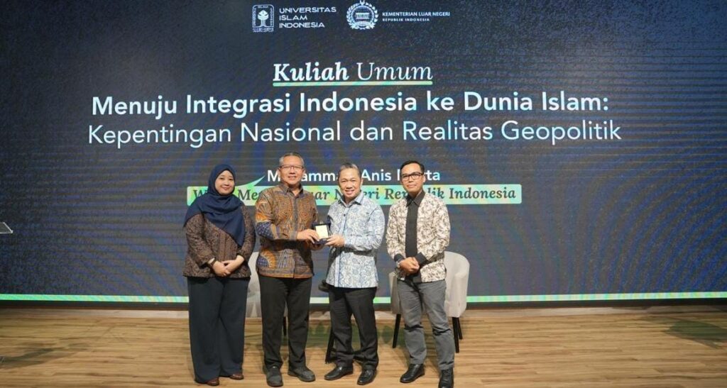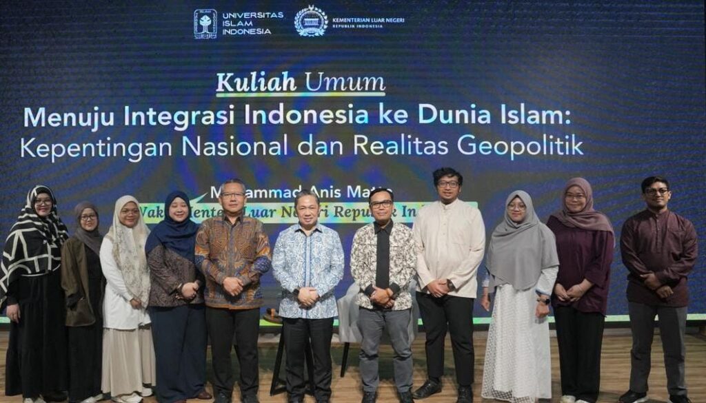 Hal itu disampaikan Wakil Menteri Luar Negeri (Wamenlu) Anis Matta dalam kuliah umum bertajuk Menuju Integrasi Indonesia ke Dunia Islam: Kepentingan Nasional dan Realitas Geopolitik yang diselenggarakan oleh Program Studi Hubungan Internasional (Prodi HI) Universitas Islam Indonesia (UII) bekerja sama dengan Kementerian Luar Negeri Republik Indonesia (Kemlu RI) di Ruang Teatrikal Gedung Kuliah Umum Dr Sardjito Kampus Terpadu UII, Jumat 21 November 2025.